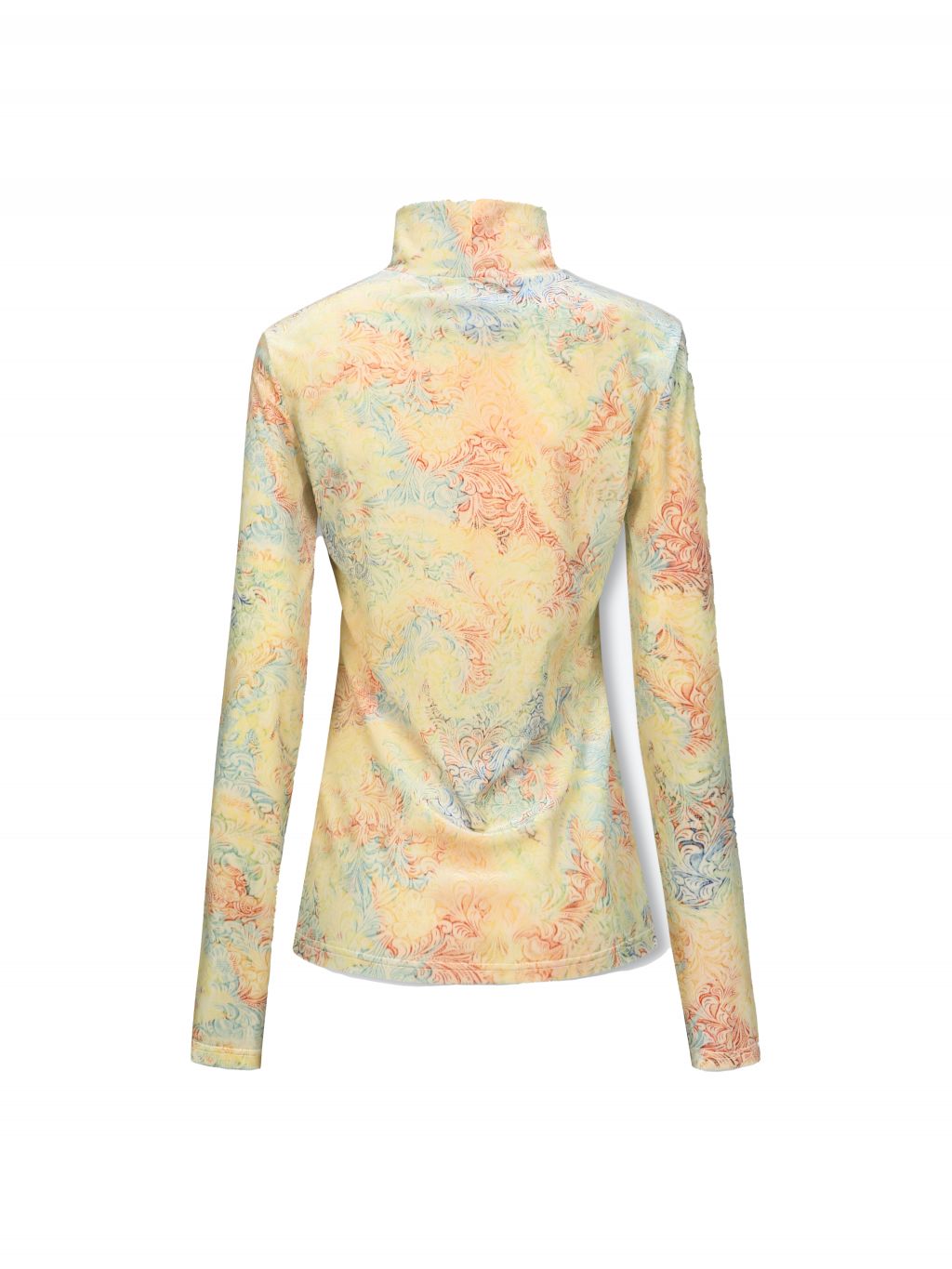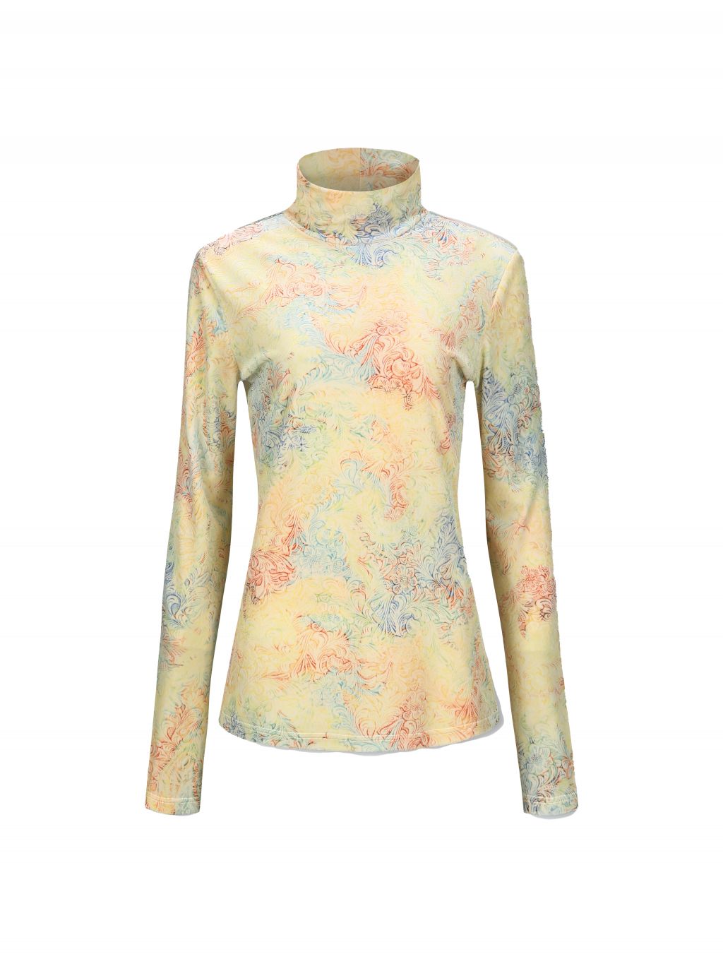 유니크한 그래픽 프린팅의 터틀넥 탑입니다. 슬림한 핏과 부드러운 질감이 포인트이며, 폴리 스판 혼방 소재로 신축성이뛰어나 편안하게 착용 가능합니다. 단독으로 착용해도 멋스러우며 겨울철 다양한 아우터와 레이어드해서 이너로 착용해도 좋습니다. GRAPHIC-PRINT FLARED PANTS아이템과 셋업으로 연출할 수 있습니다.