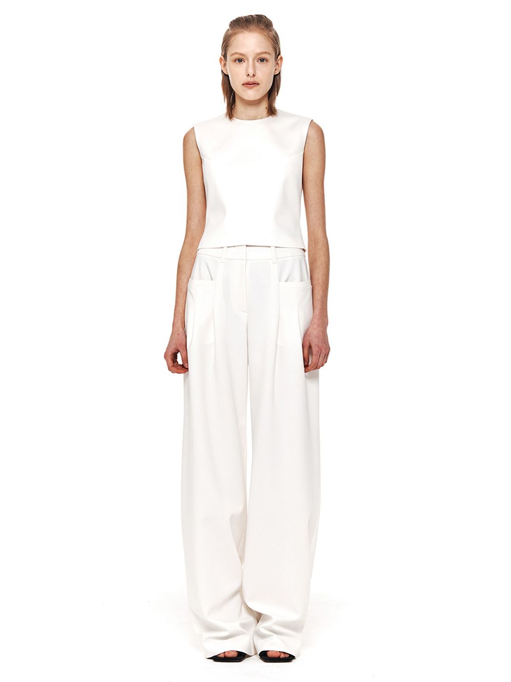 앞면에 입체감 있는 포켓과 턱주름 디테일로 보다 와이드한 핏을 연출합니다.