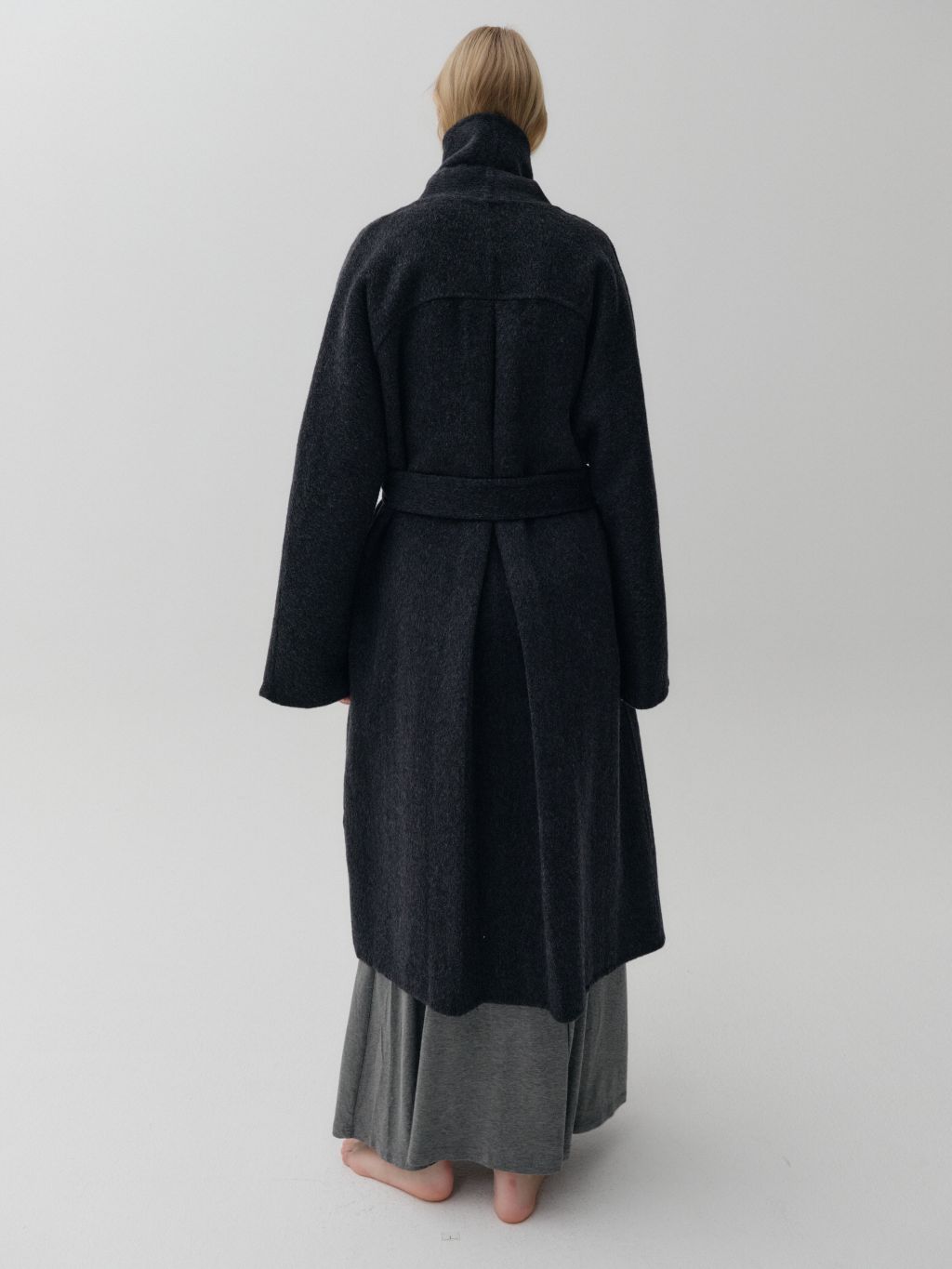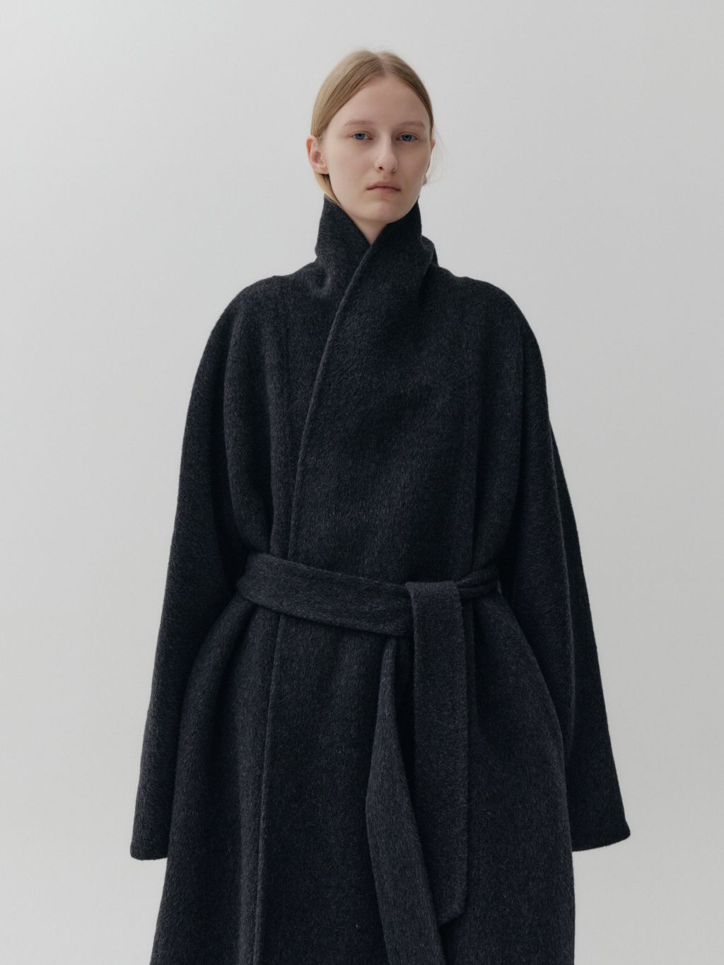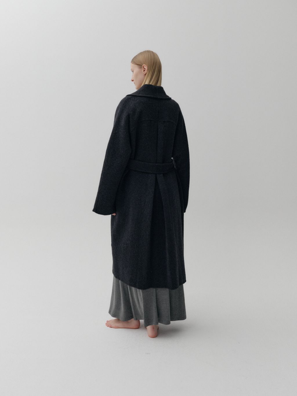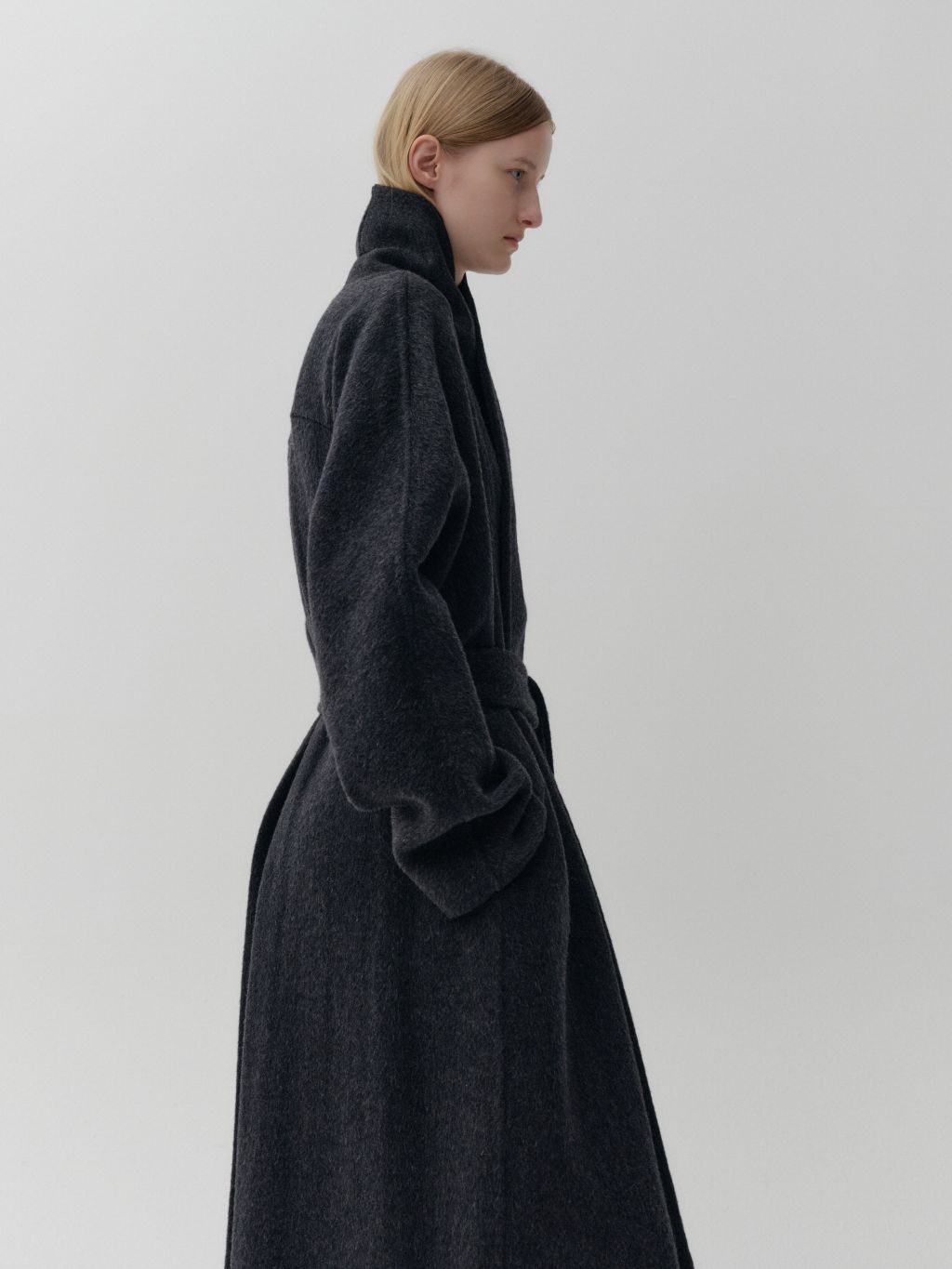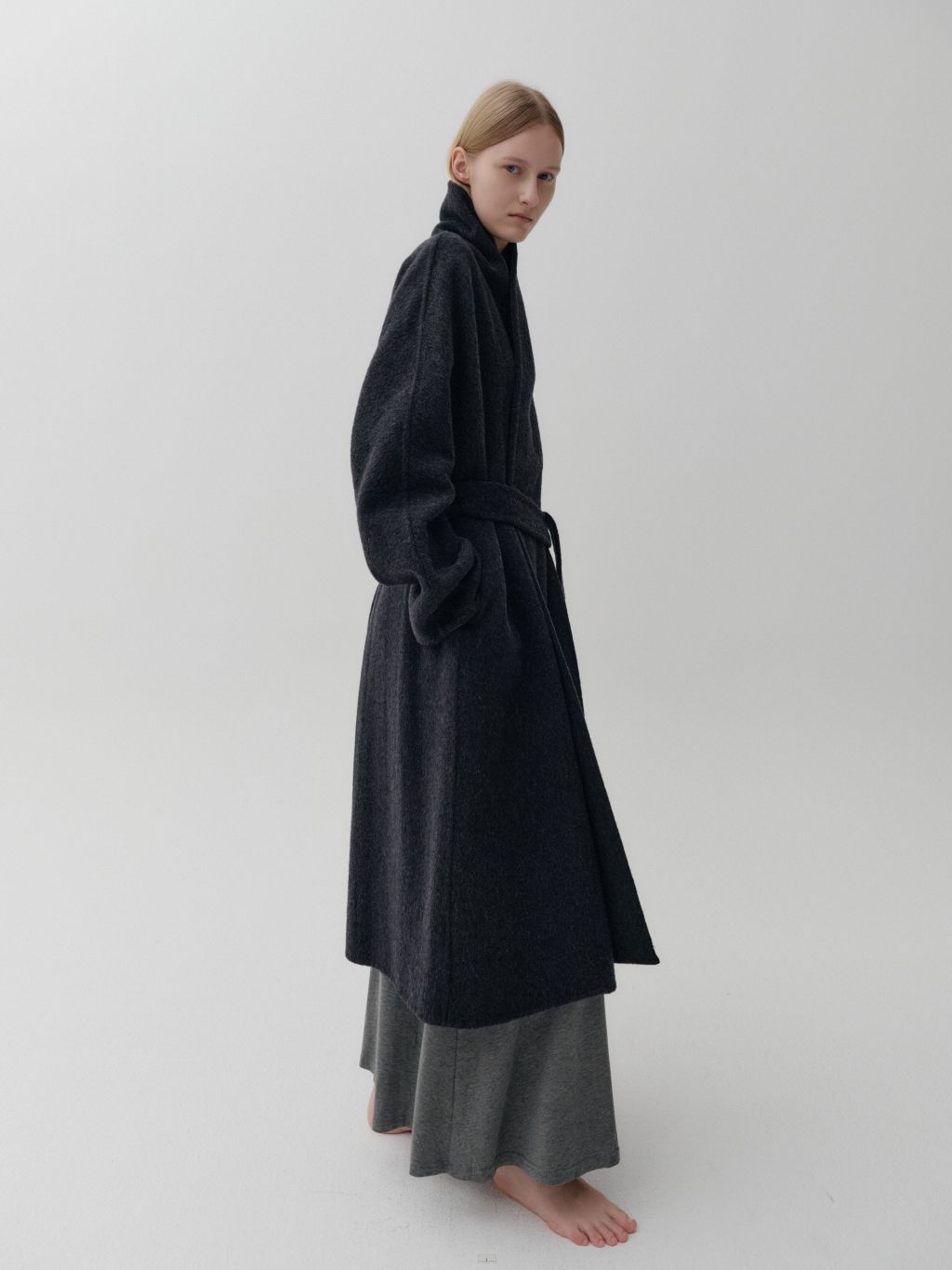포근하게 감싸 안는 듯한 여유있는 실루엣이 돋보이는 핸드메이드 로브 코트
