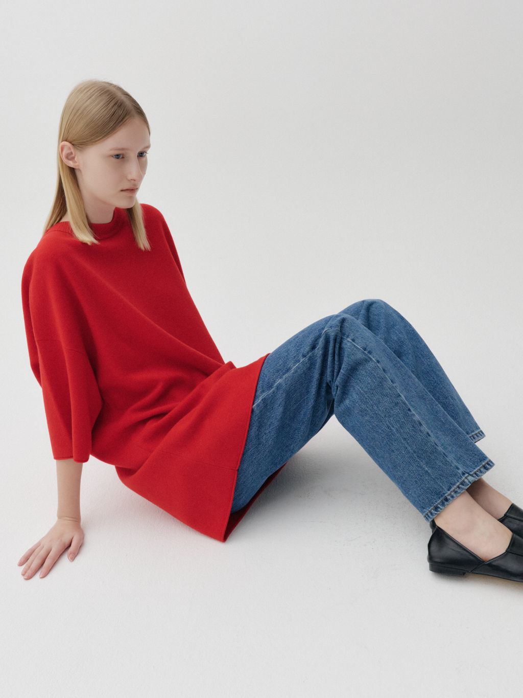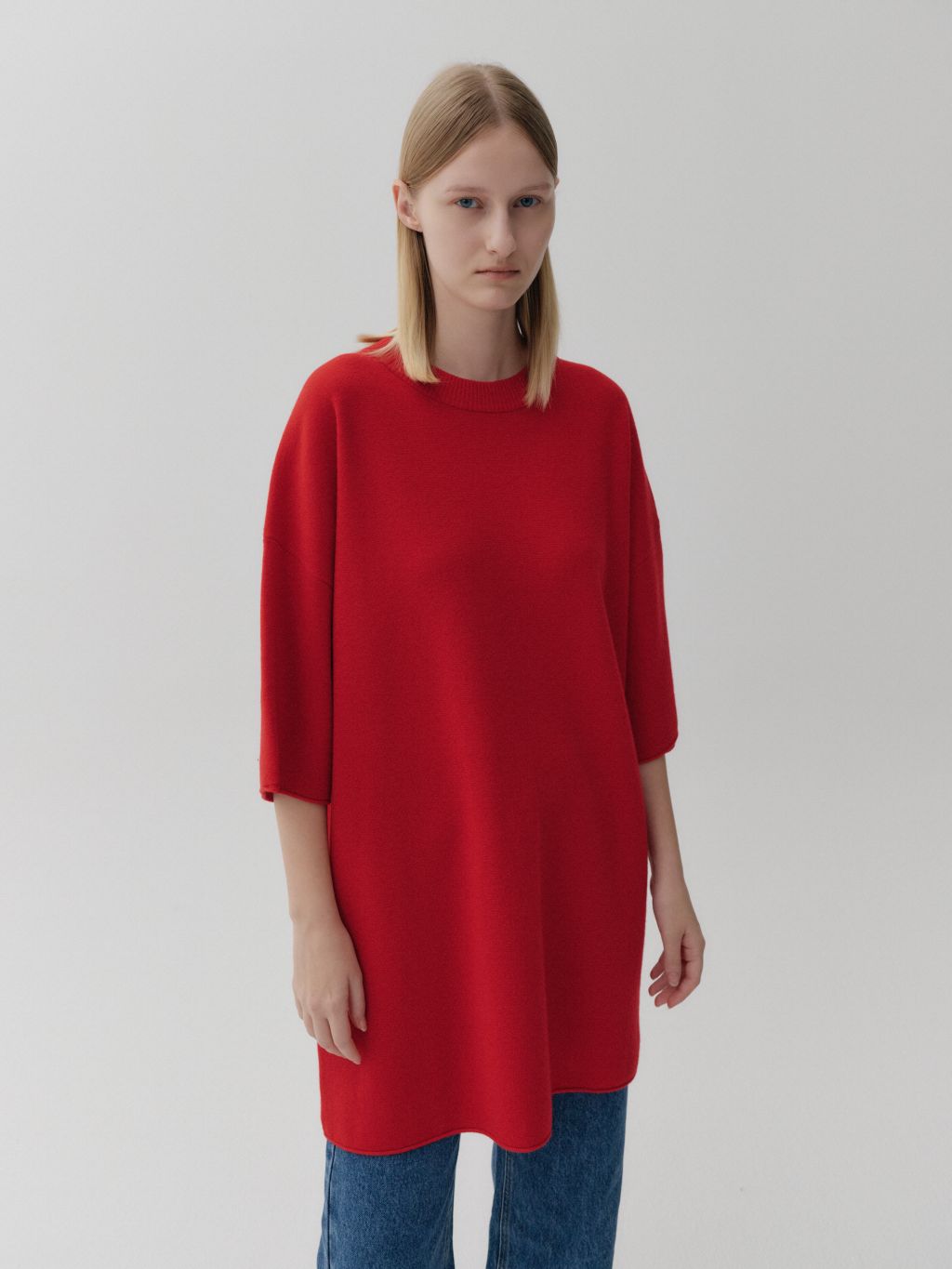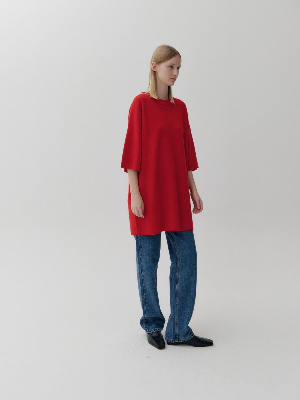 넉넉하게 떨어지는 하프 기장의 소매라인