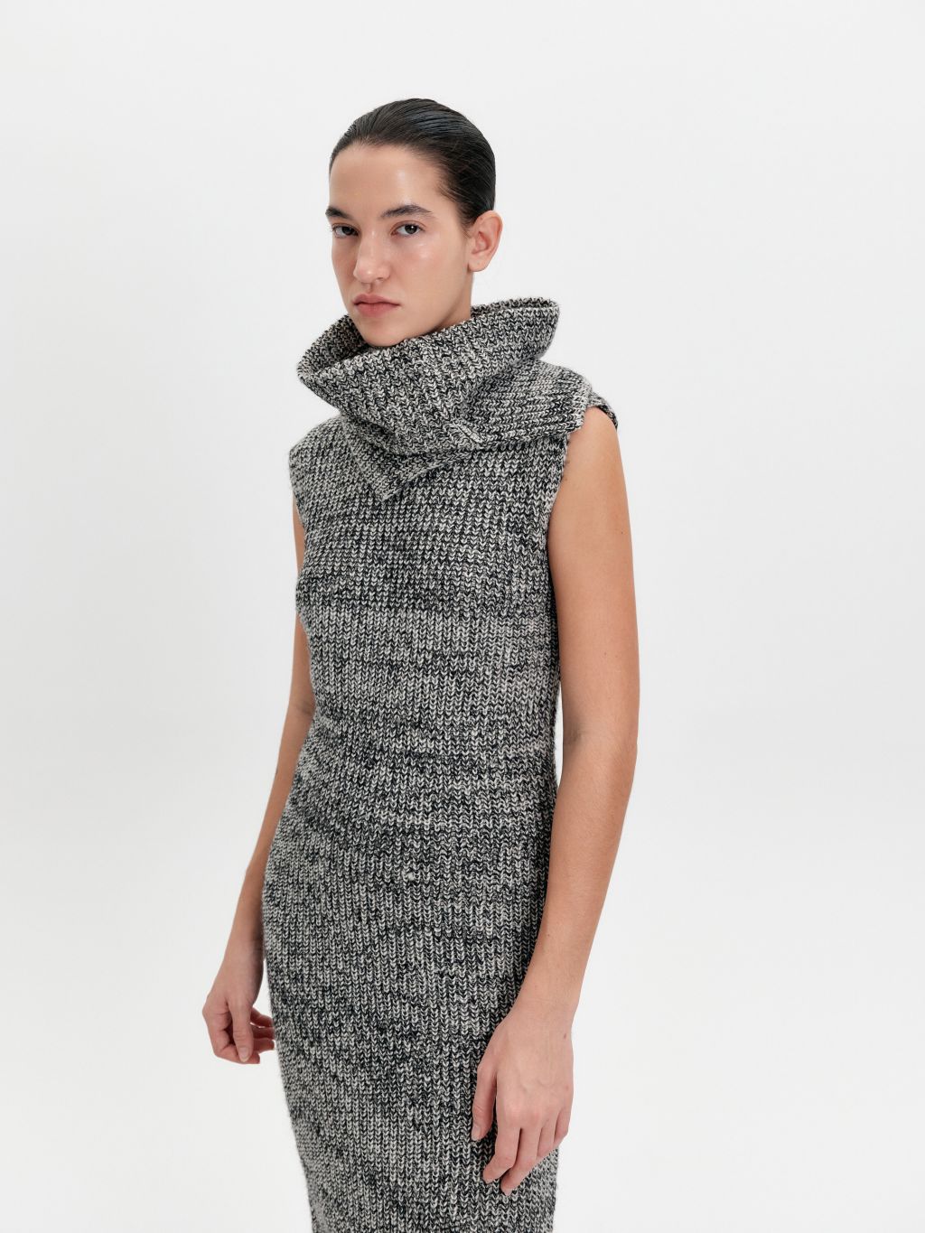 같은 소재의 니트 드레스와 함께 매치하면 더욱 세련되게 연출할 수 있습니다.