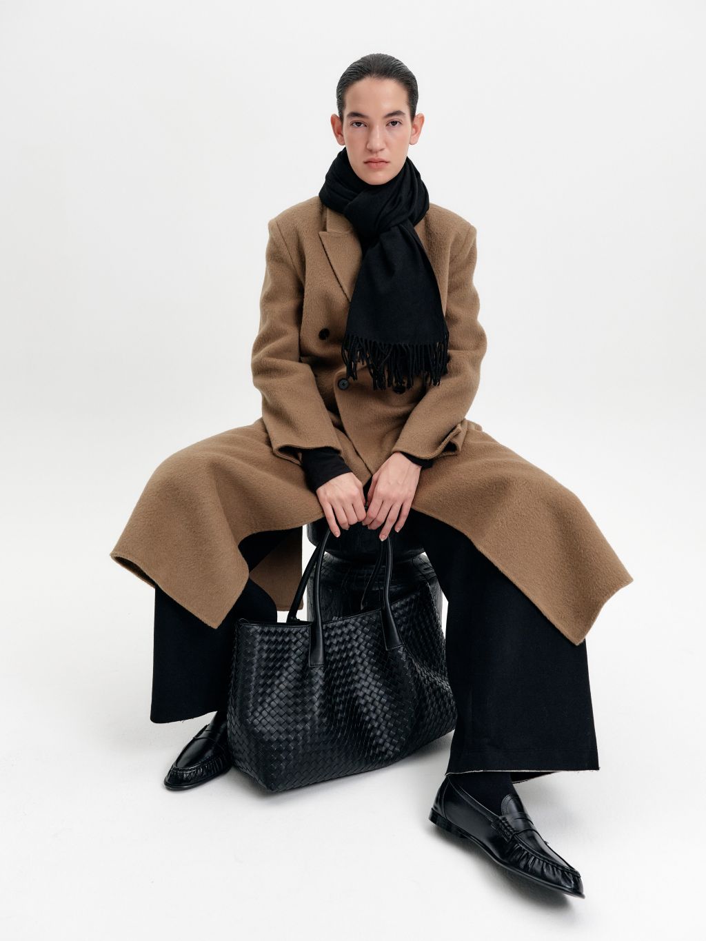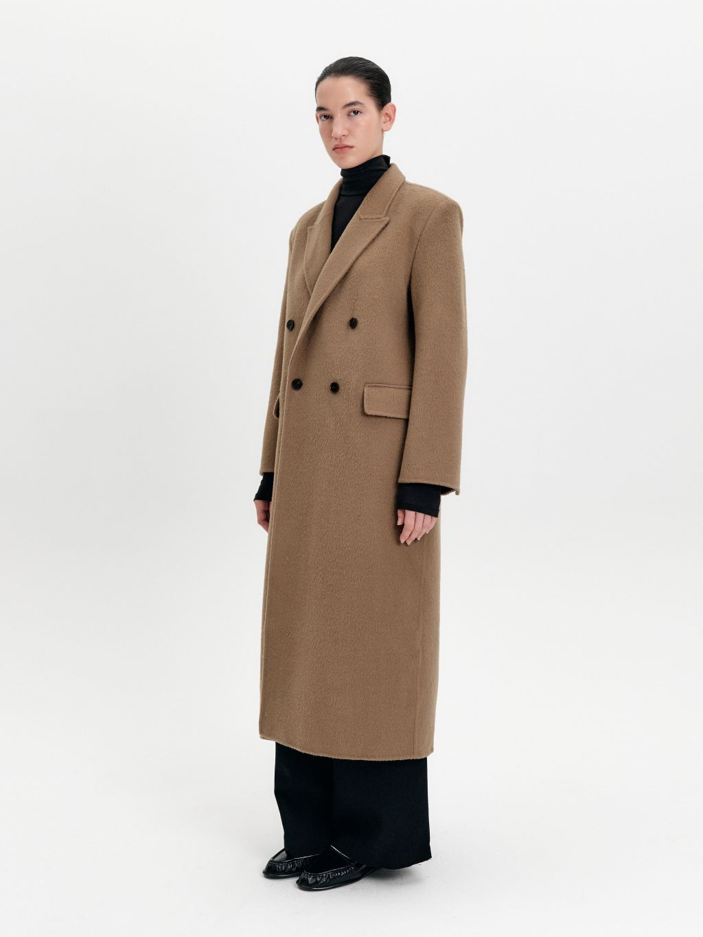 램스울 혼방의 소재로 완성한 클래식 더블 브레스트 핸드메이드 코트