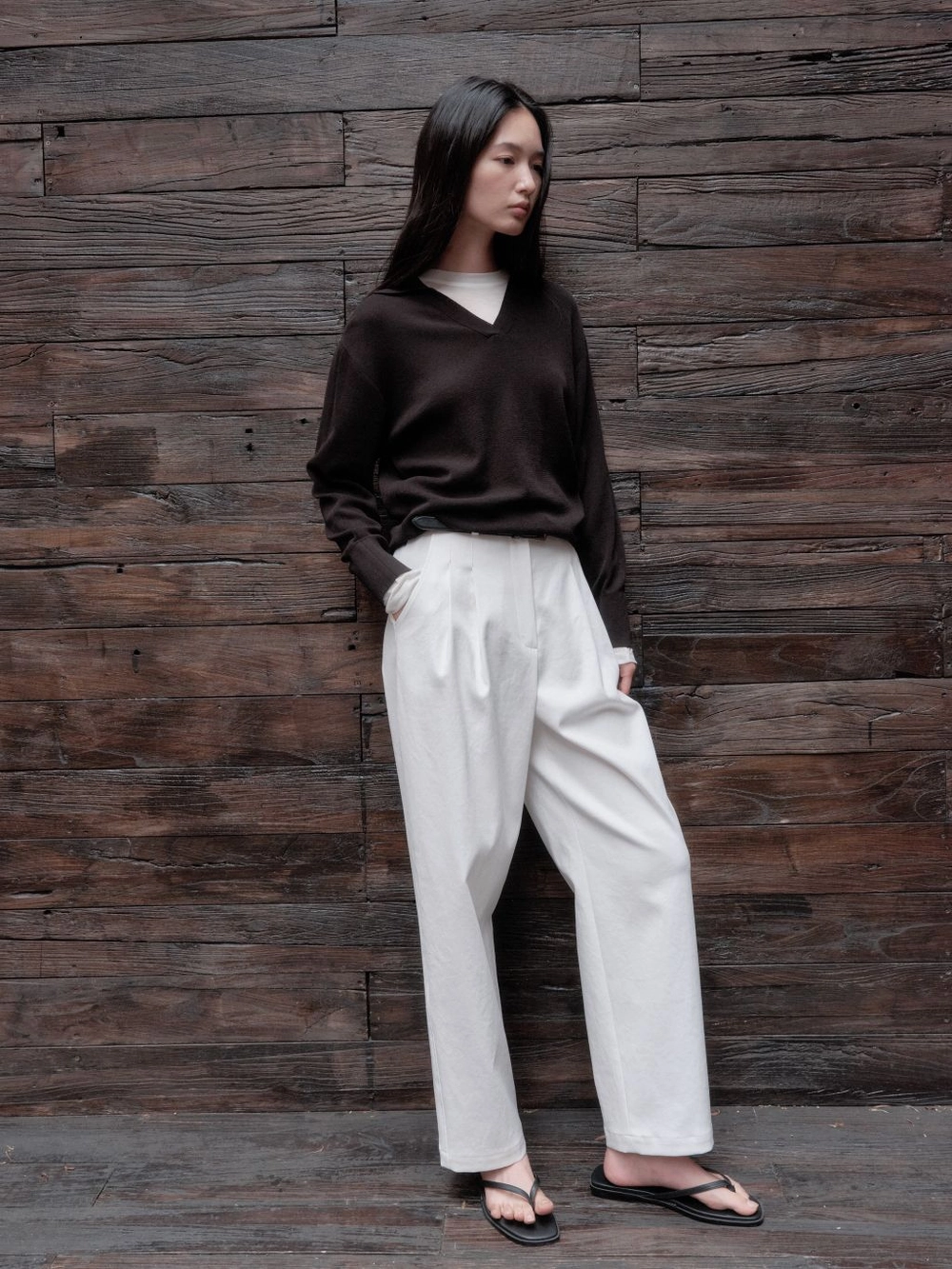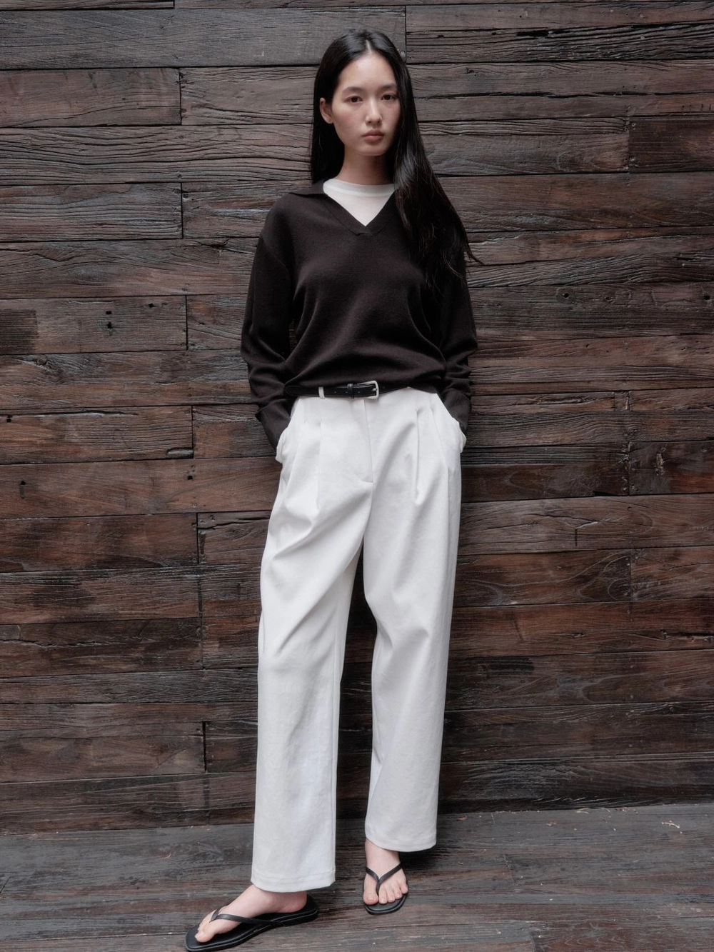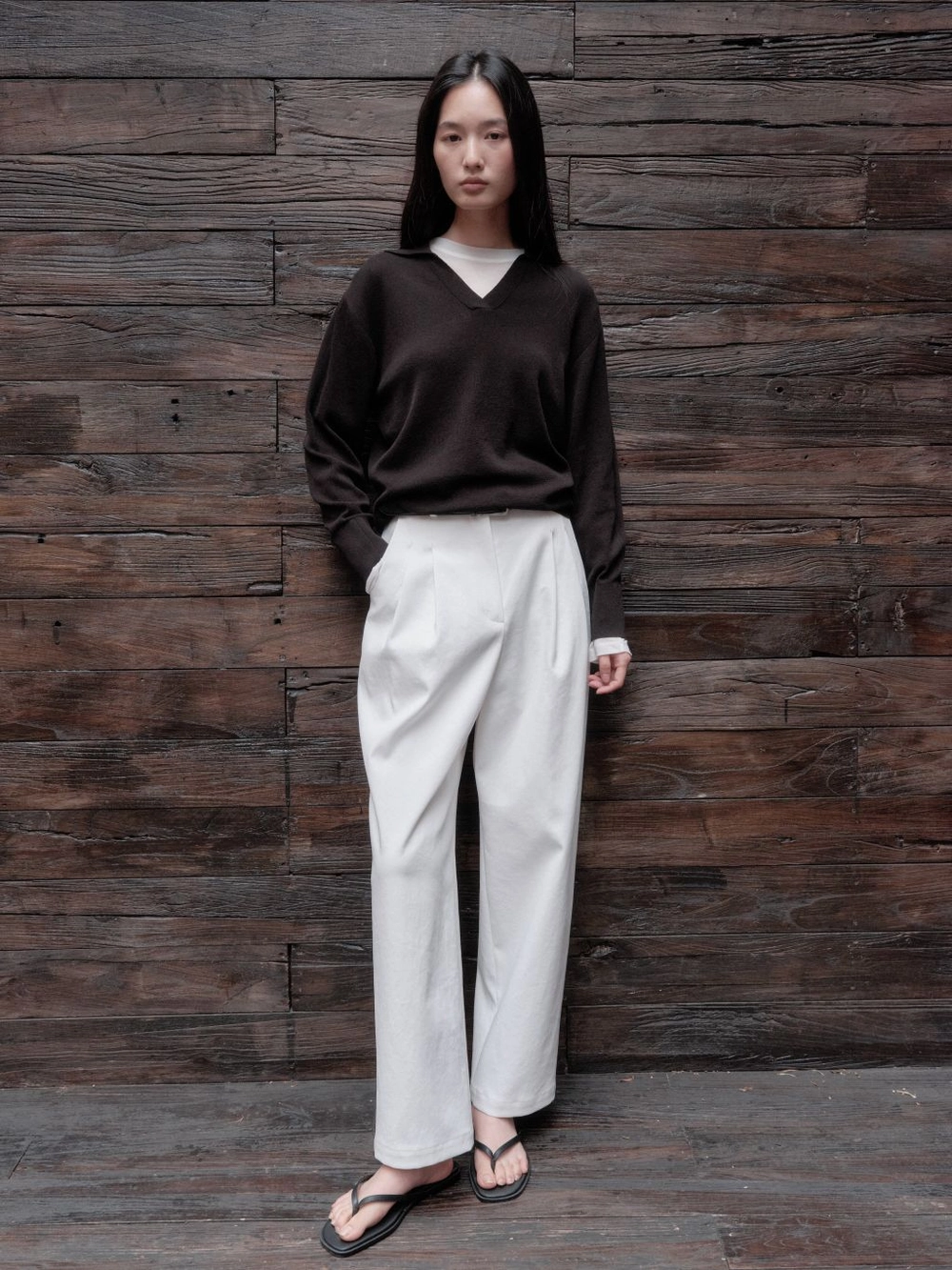 1. 부드러운 터치감과 오픈 카라 네크라인 디자인의 니트 풀오버